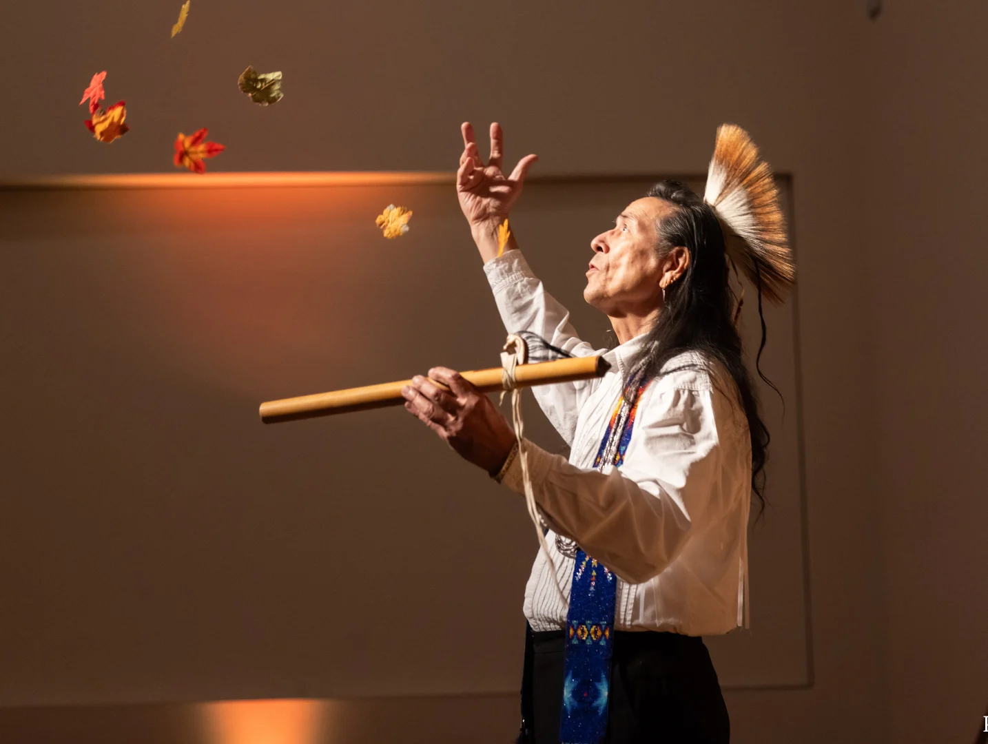 Tchin (pronounced ‘chin) is a nationally known, multi-award winning artist. He was born in Norfolk, Virginia and lived in rural Virginia and Rhode Island where he received his early schooling. He attended the Institute of American Indian Arts in Santa Fe, New Mexico and graduated from Rhode Island School of Design. Tchin is an accomplished musician, folklorist, jeweler, and teacher. He is the author of the children’s book Rabbit’s Wish for Snow and travels the country sharing Indigenous stories and music.