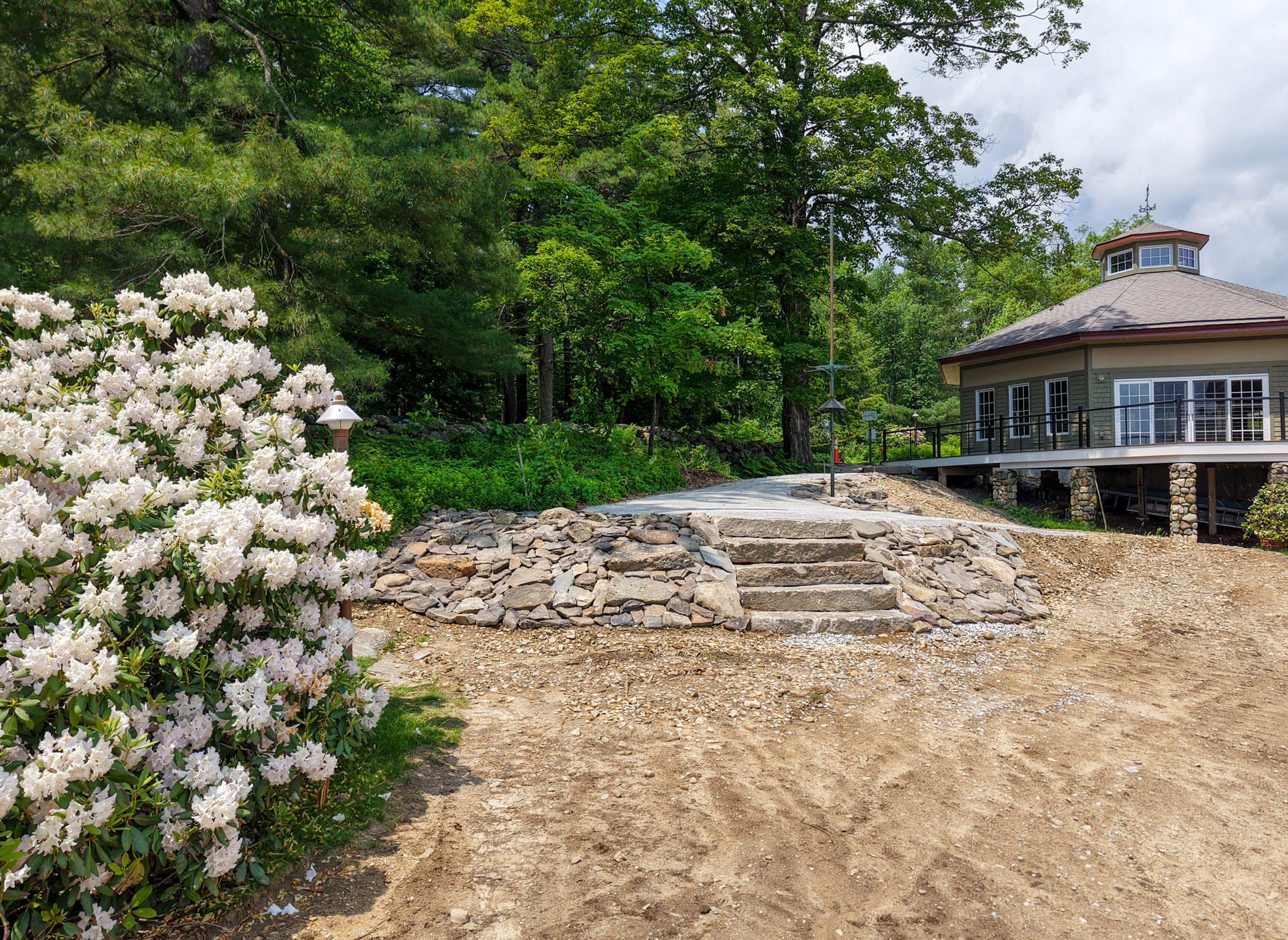 A new stone wall and walkway will create a smoother, more accessible route between the Lodge and lawn.